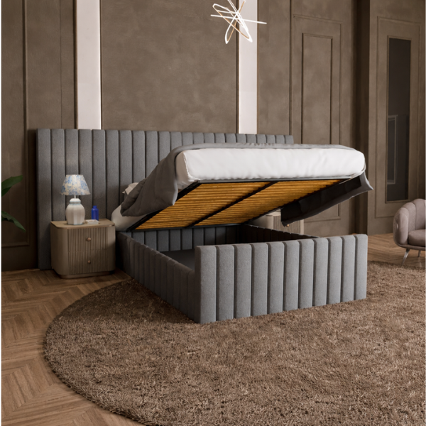 Ottoman beds — also known as storage beds — are designed with a hidden storage compartment beneath the mattress, accessed effortlessly via a smooth hydraulic gas-lift mechanism. This innovative design makes ottoman beds the perfect solution for bedrooms where storage space is limited.