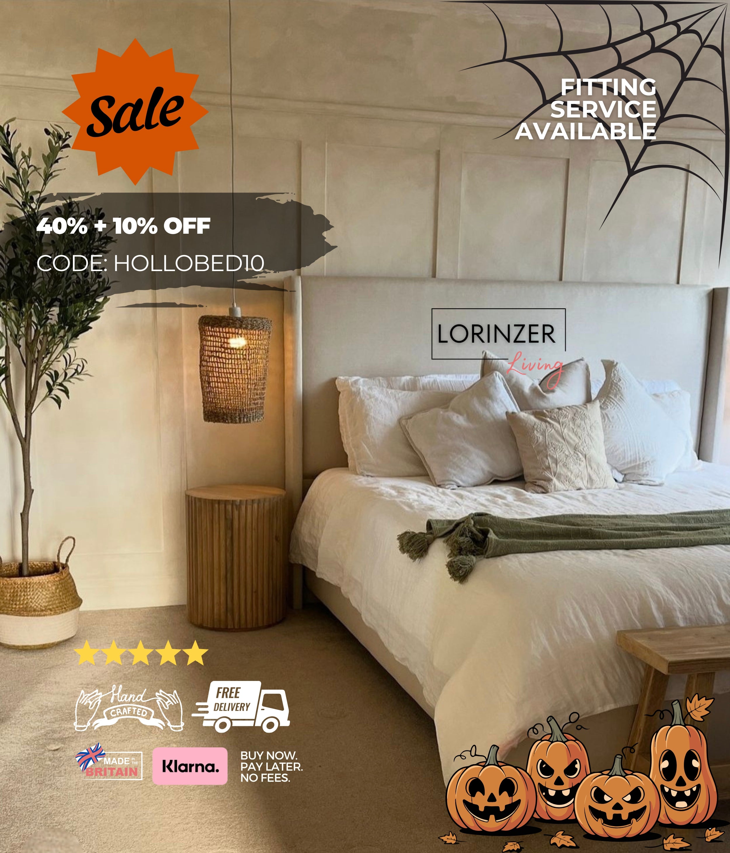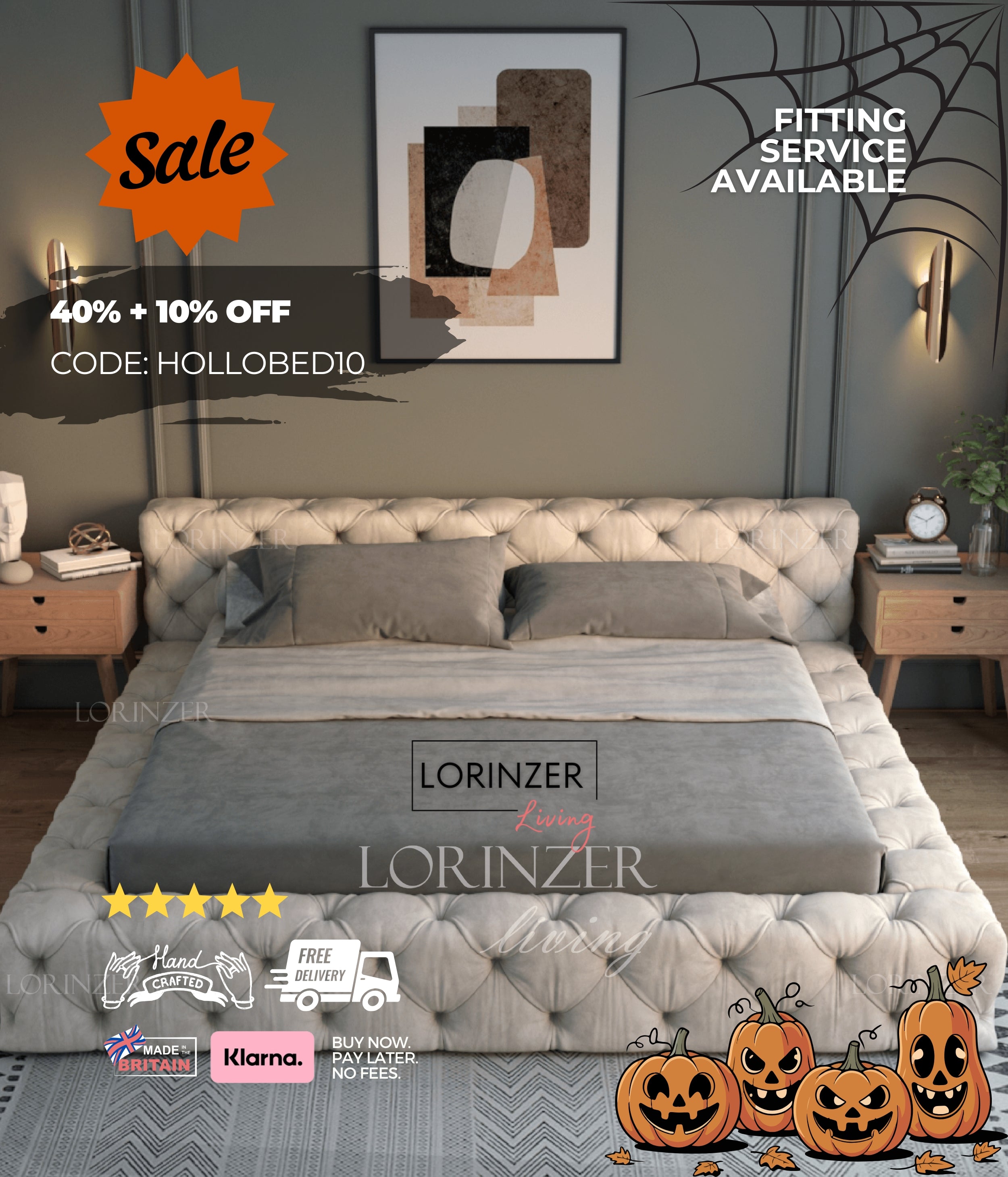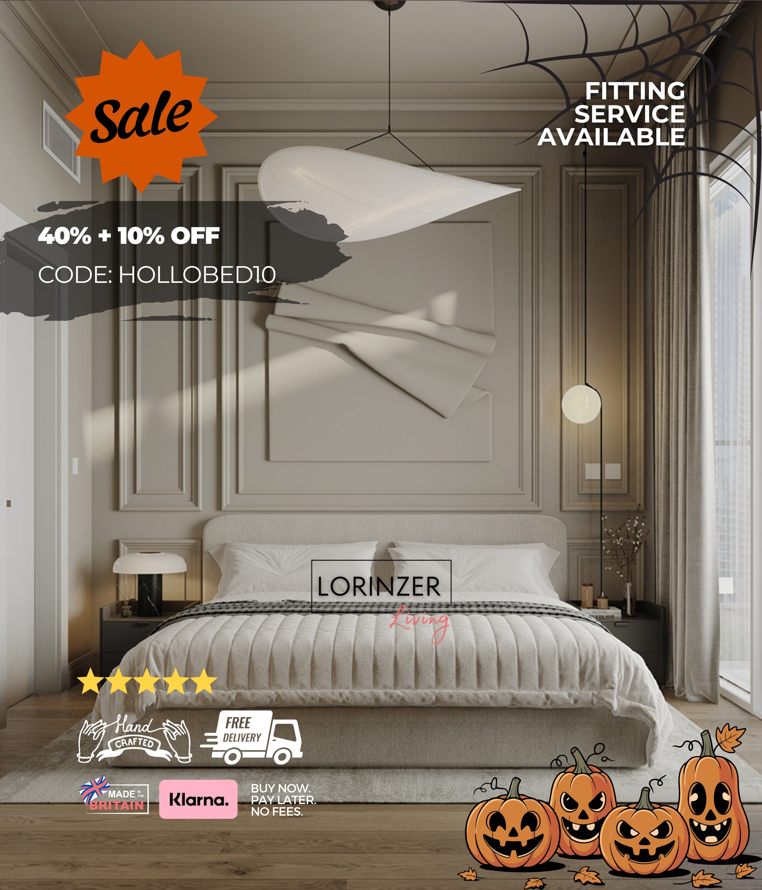 Experience the luxury & comfort of our handmade beds. Indulge in the plush comfort of our luxurious and sophisticated bed frames, with wide range of styles including wingback beds, sleigh beds, ottoman beds, headboard, chesterfield Bed and boucle bed frames with ottoman storage. Crafted with the finest quality materials and curated by our expert team at Lorinzer Living which exude a perfect blend of contemporary style and timeless elegance, all at an affordable price point with love in UK.